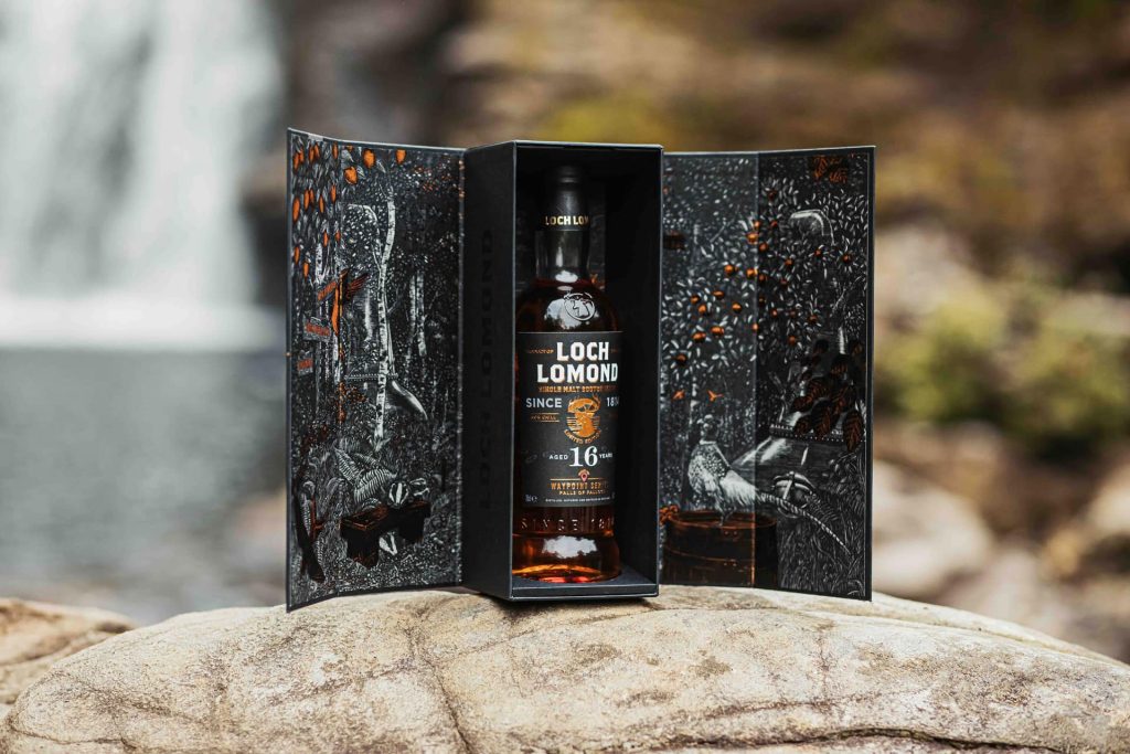 De Loch Lomond Waypoint 16 Year Old wordt gepresenteerd in een opvallende doos met handgetekende illustraties van de Welshe illustrator Brett Breckon. De illustratie beeldt een mythische reis uit door dichte bomen, flora en fauna naar de majestueuze Falls of Falloch. Het beeld is in eindeloos detail verwerkt in een grote krasplaat, waarbij het zwarte oppervlak wordt verwijderd om een helder wit eronder te onthullen. Whisky-liefhebbers die het kunstwerk verkennen, zullen bij elke blik nieuwe lagen van intrige ontdekken, waarbij de proefnotities van de whisky subtiel in het landschap zijn verwerkt. Gedreven door een eindeloze geest van ontdekking van nieuwe mogelijkheden in smaak en whiskycreatie, is Loch Lomond de enige distilleerderij in Schotland die zowel traditionele swan neck ketels als hun unieke straight neck ketels huisvest, waardoor het een van de meest innovatieve en inventieve distilleerderijen ter wereld is.