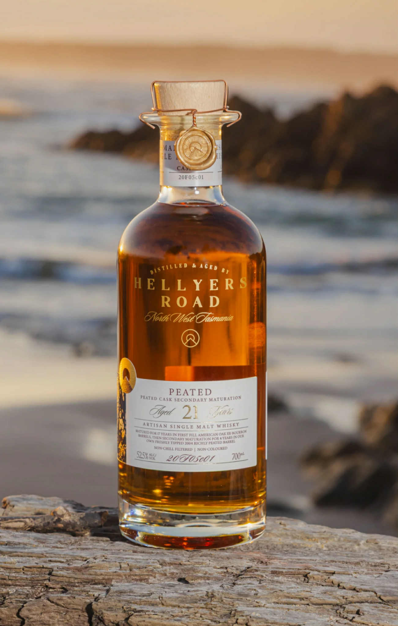 Hellyers Road 21 Year Old Peated Cask Finish – een van Tasmanië’s mooiste single malts én trotse winnaar van Best Australian Single Malt bij de World Whiskies Awards 2025 in Londen.