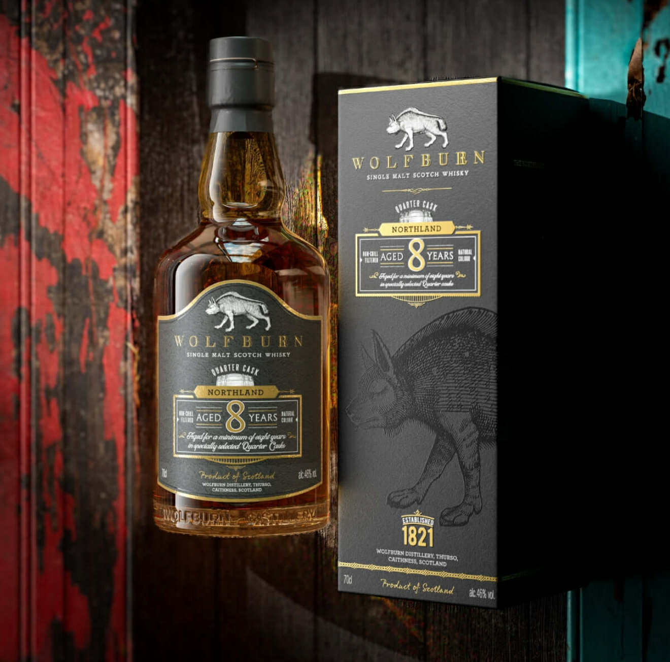 In 2013 bracht Wolfburn Distillery in Thurso zijn allereerste whisky uit: de Northland. Gerijpt in Amerikaanse eiken quarter casks, werd deze al snel een favoriet dankzij zijn soepele, uitgebalanceerde Highland-karakter. Meer dan tien jaar later begint de Northland aan een nieuw hoofdstuk: Wolfburn Northland 8-Year-Old Single Malt Scotch Whisky. Vormgegeven door tijd, geduld en de trage noordelijke rijping, toont deze dram meer diepte, verfijning en rijkdom, terwijl hij trouw blijft aan de kenmerkende Wolfburn-stijl.