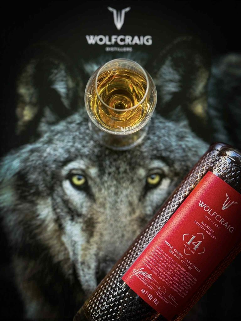 De Wolfcraig 14 Year Old Deluxe Blend – Second Edition is het werk van twee levende legendes: Richard Paterson OBE en Ian Macmillan — namen die meer verhalen dragen dan menig distilleerderij aan vaten bezit. Voor deze tweede editie kozen zij een uitzonderlijke combinatie van Amontillado-, Pedro Ximénez- en Muscatel-sherryvaten, waarmee ze een perfecte balans hebben gecreëerd tussen rijkdom, kruidigheid en zoete elegantie.