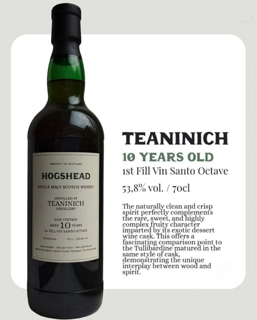 Teaninich 10yo – 1st fill Vin Santo octave: schone Highland spirit gewrapt in zoete Italiaanse dessertwijn-noten.