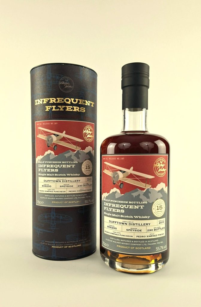 De Glenrothes 2009 (Moscatel finish) gaat richting patisserie en romigheid… en direct daarna duikt de Dufftown 2010 (PX finish) de diepte in. Donkerder, rijker… echt dessert in een glas.