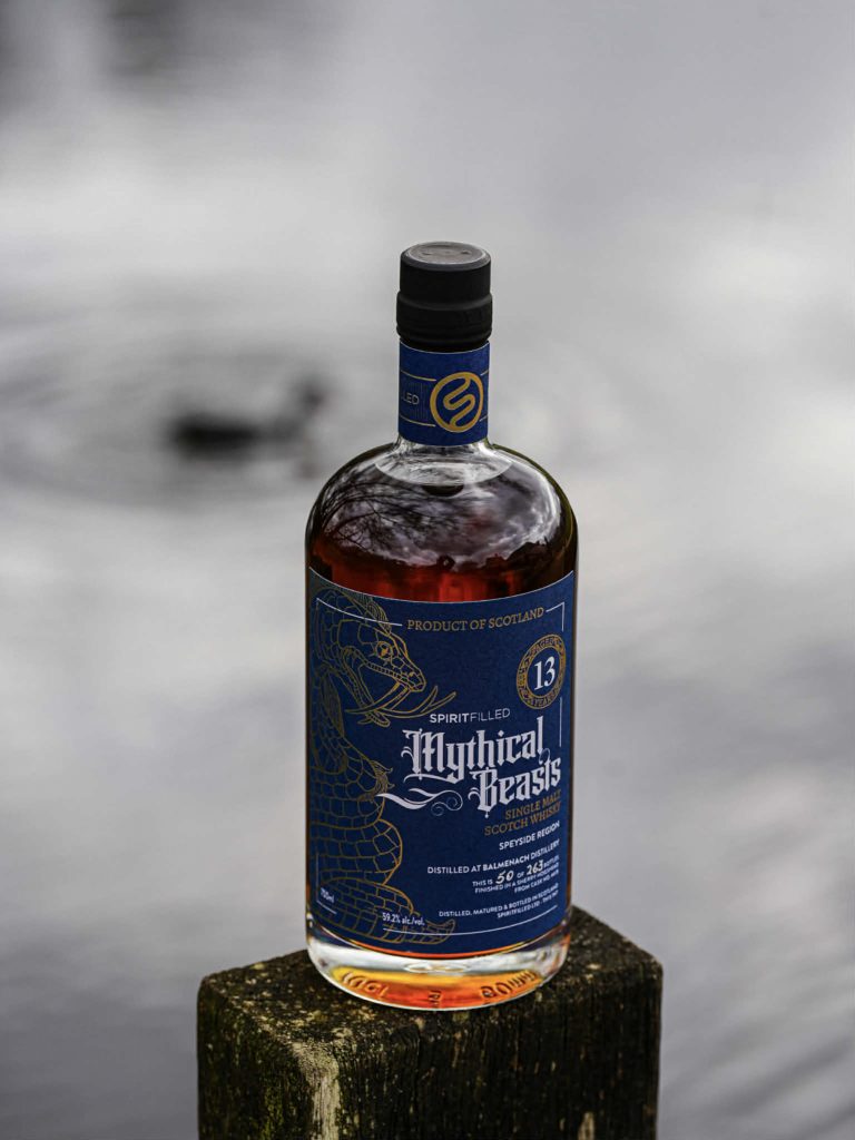Spiritfilled, opgericht door Ross Archer en Russell Spratley, bottelt niet zomaar whisky. Met hun Mythical Beasts-serie geven ze elke release een eigen identiteit. Geen label om het label… maar een karakter dat écht bij de whisky past. Deze is Nyami Nyami.